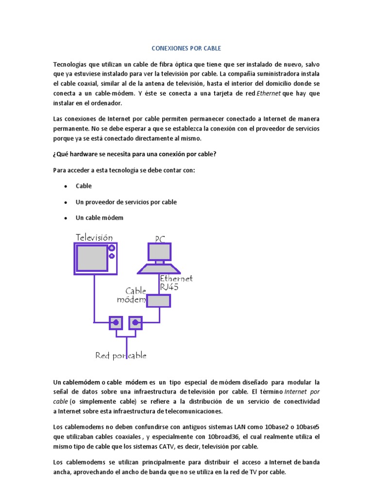 Internet por cable es el acceso de banda ancha de alta velocidad que emplea un módem de cable y un cable coaxial similar al cableado que se conecta a tu televisor.