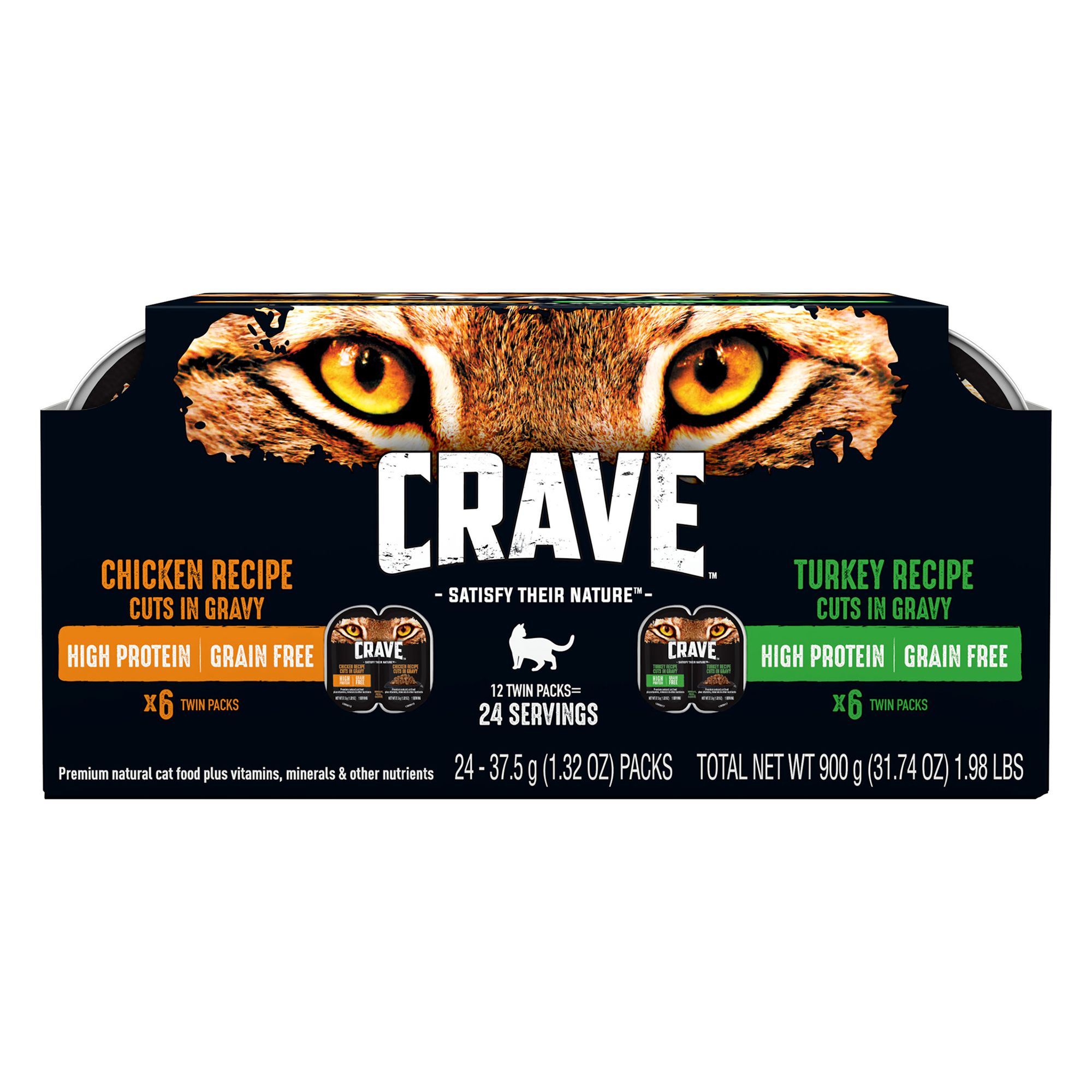 Twin pack trays 48 servings total of crave grain free high protein wet cat food paté chicken real chicken 1st ingredient wildcats and modern cats thrive on a diet of high quality animal protein.